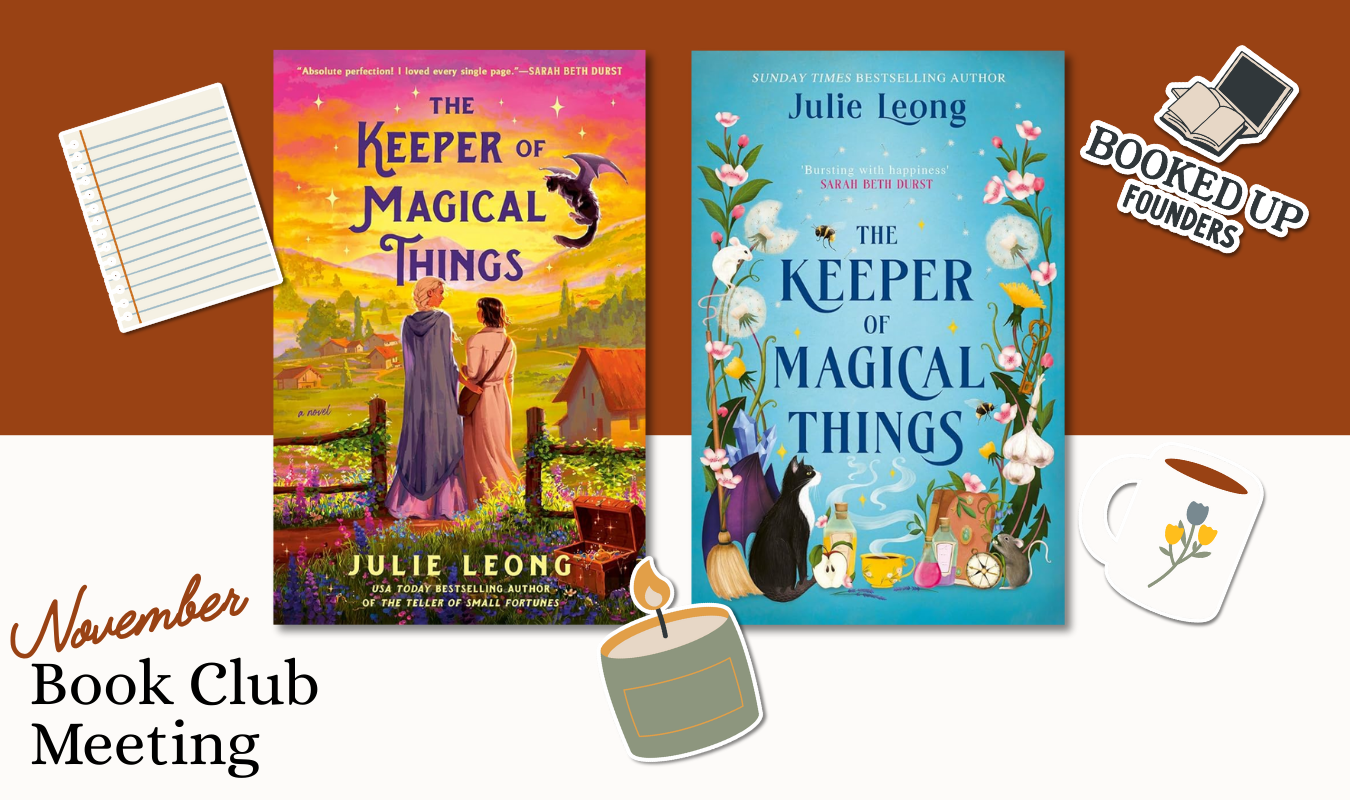 The Booked Up Founders November theme was Cozy Cottagecore. We dove into The Keeper of Magical Things by Julie Leong, and what a delightful change of pace it was! For many of us who typically reach for thrillers, true crime, or darker fantasy, this cozy fantasy felt like a warm hug…even if it came with a few predictable plot points.